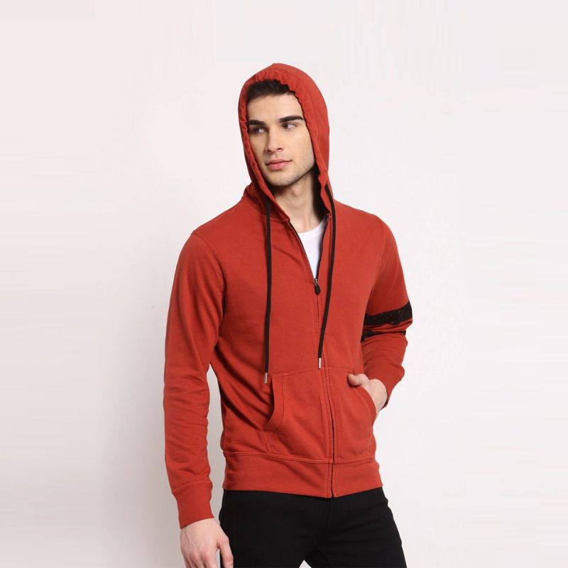 Men Solid Full Sleeves Hoodie Jacket
