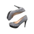 A pair of Grey solid pumps ,has regular ankle and closed back