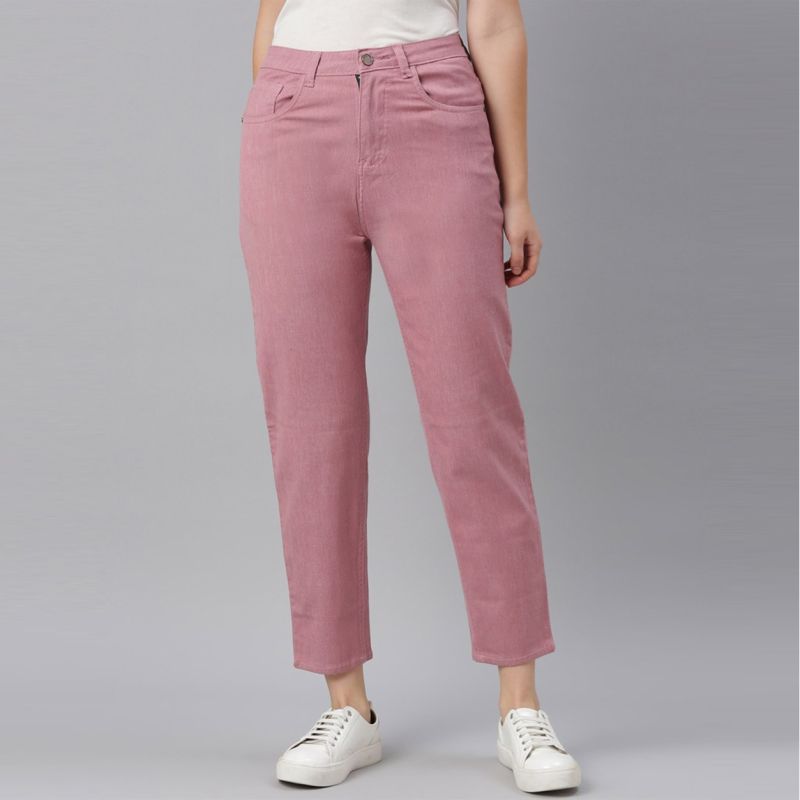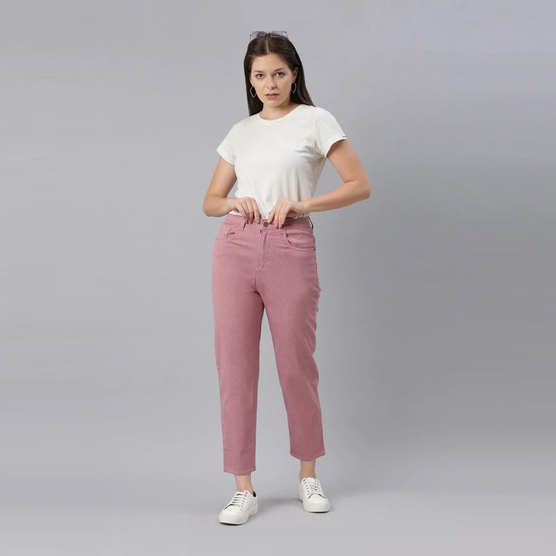 Women Pink Relaxed Fit High-Rise Stretchable Crop Jeans