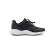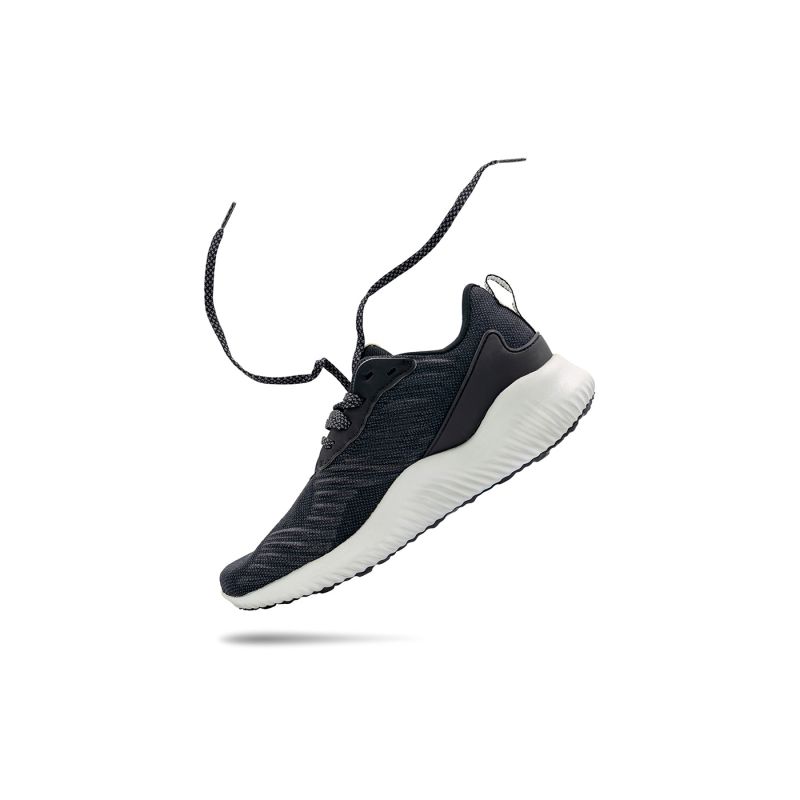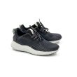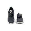 زوج من أحذية المشي السوداء ، مع تصميم منتظم ، تفاصيل الأربطة شبكة علوية وسادة قدم مبطنة نعل سفلي محكم ومنقوش