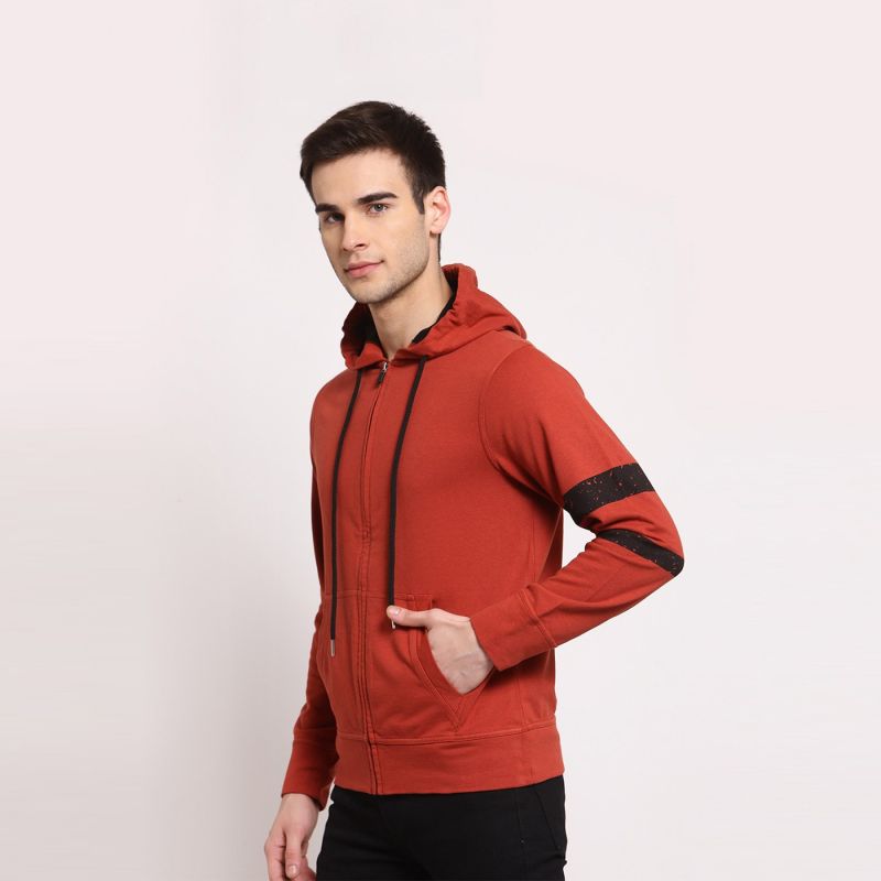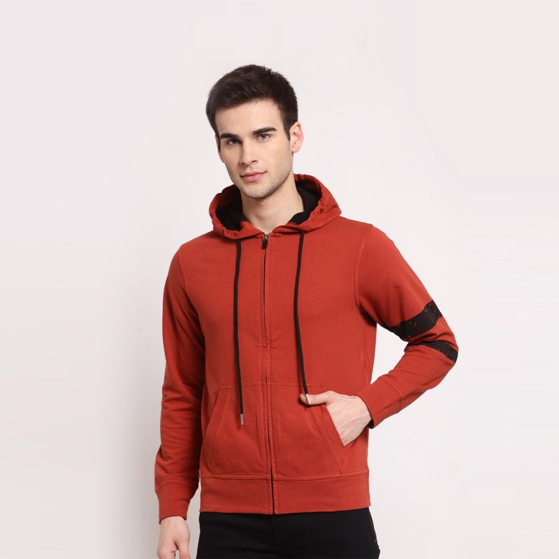 Men Solid Full Sleeves Hoodie Jacket
