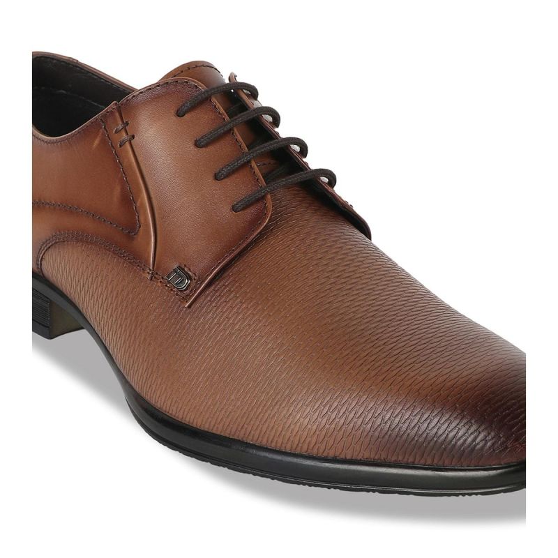 Men Tan Brown Solid Leather Oxford Shoes