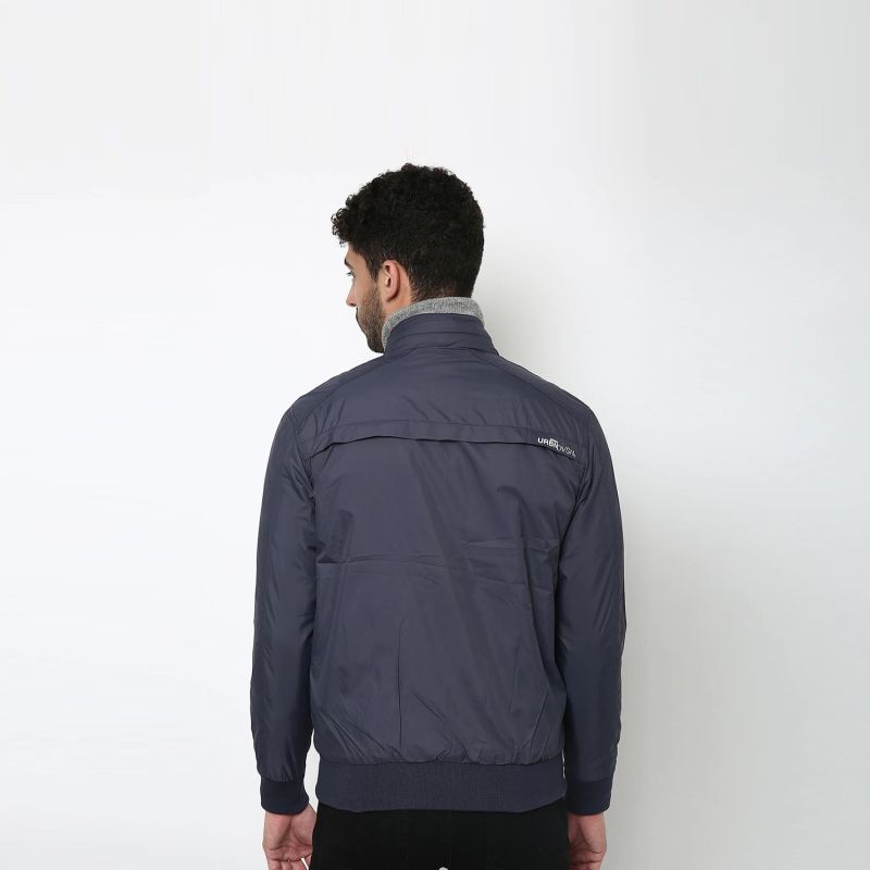 Solid puffer jacket, has a mock collar, 2 pockets ,has a zip closure, long sleeves, straight hemline, polyester lining.